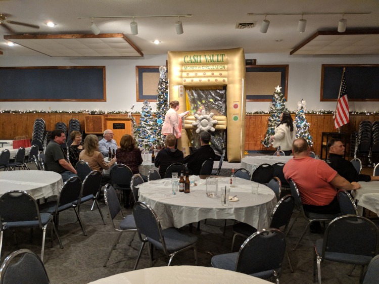 A clear, enclosed booth with a built-in fan that whips cash, coupons, or prize tickets into a whirlwind while a timer counts down. Players step inside and try to grab as many as they can before time runs out. Compact, sturdy, and attention-grabbing; suitable for teens and adults indoors or outdoors. Requires a standard electrical outlet and a flat setup area.